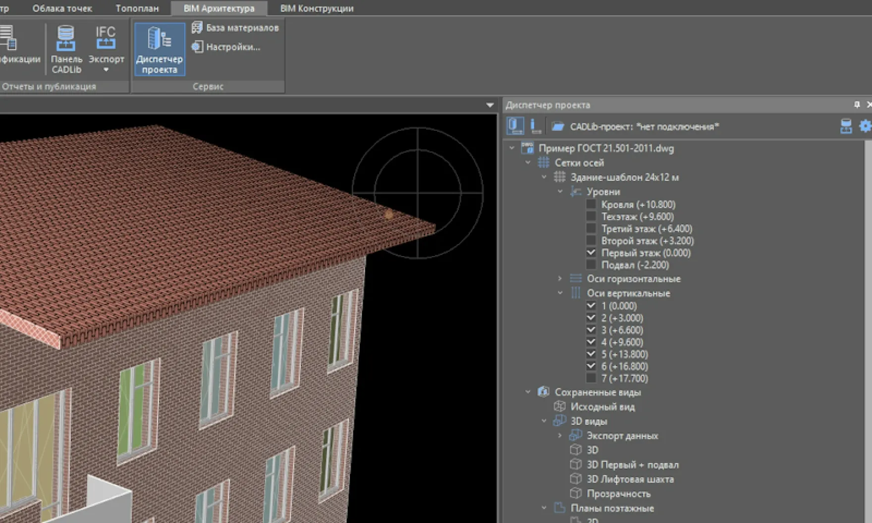 Удобная навигация по модели с возможностью создания новых видов, фасадов, разрезов, поэтажных планов и др.